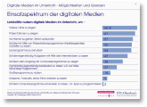 46% der Gymnasiallehrkräfte, aber nur 34% der Lehrkräfte an Haupt- und Realschulen berichten, dass an ihrer Schule interaktive Whiteboards im Einsatz sind. Die eigene Computer- und Internetkompetenz schätzen 68% der befragten Lehrer als gut bis sehr gut ein, einen guten Überblick über die Einsatzmöglichkeiten digitaler Medien im Unterricht haben allerdings nur 47%.